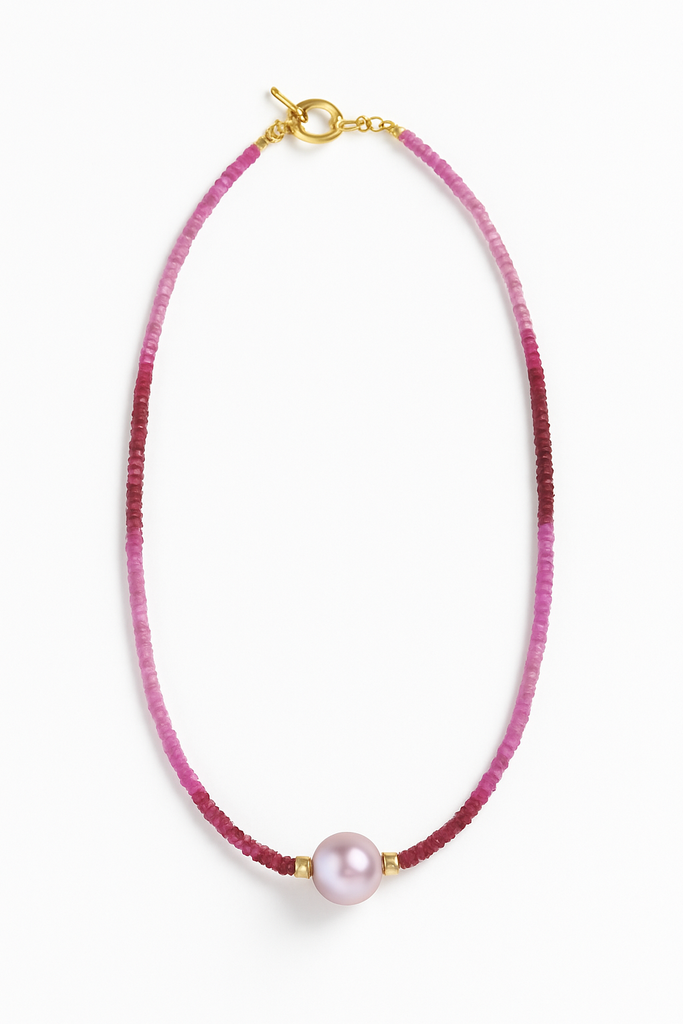 18KY Ombré Ruby & Pink Pearl Necklace