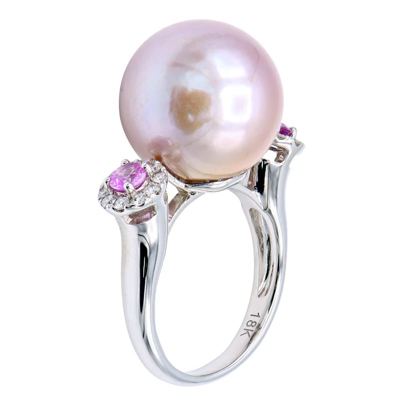 18KW Pink Pearl & Sapphire Ring