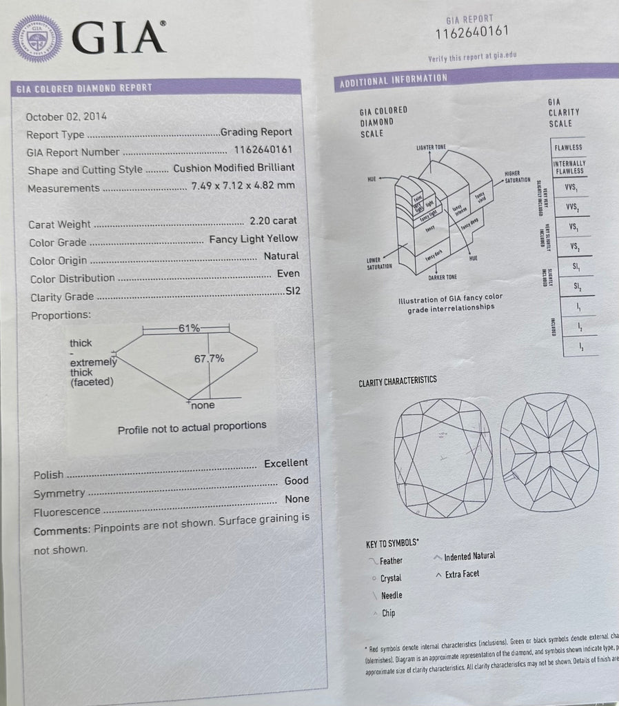 GIA Cushion Cut Fancy Light Yellow Diamond 2.2ct (SI2)