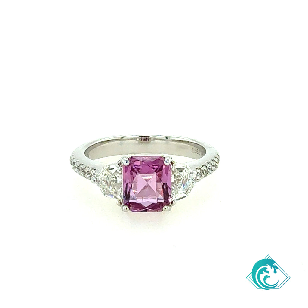 18K White Gold Pink Sapphire Diamond Ring (No Indications of Heat)